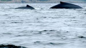 On Wednesday, we headed down to Burnt Cove to sea kayak and were greeted right off the beach by a pair of humpbacks. They are truly magnificent and they swam within 20 feet of us as we bobbed in the swell. I have two students from Germany and one from Ontario. I was thrilled for them to have a “close encounter” with our most famous summer visitors. We did lose sight of the shore a few times as we paddled around the islands off Burnt Cove. I had a most unique view on the day. A view spent looking backward through the day.