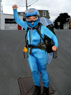 I mentioned this transformation one day to Diane of WOKie fame and she volunteered to lend me her bright blue lycra ski suit to complete my super hero outfit. A few days later she dropped the shiny blue mound of fabric into my car. I’d planned to make my appearance as a BHSH the next time we got together but the red phone in my lair did not ring so I forget to become the BHSH.