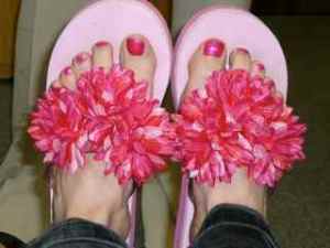 Whenever I take my socks off these days, I am instantly startled. My toenails are shockingly pink. On Wednesday I paid a visit to the Director of Human Resources at Memorial and she gave the first donation towards “Pink Outside the Box.” She provided me with a stunning pair of pink flip flops complete with pink daisies and then proceeded to paint my toenails to match. Another woman in the office put on “top-coat” (who knew there was something called top-coat?) to help keep the polish job looking sharp. My feet don’t look like mine.