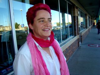 When Melissa rinsed the dye from my head, pink bubbles abounded and Paula came back to life. A photographer and writer from MUN dropped by and we had fun regaling them of stories from the week. My day glow hair emerged and as Melissa dried and styled it I could see a mix of reactions on the other stylists faces-ranging from bemused grin to abject horror.