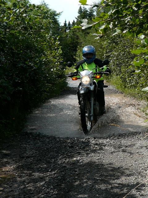 Congrats to Marian who passed her motorcycle road test yesterday! After a short celebration at Tim’s, we had the most heavenly ride on the gravel roads behind the Goulds. We both now have complete body armour (and as a result look rather like robo cops-especially when we take our protective jackets off at Tim’s) and so we felt much freer to experiment with different riding techniques in the dirt.