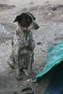 About 200 metres below the top, we were joined by Maria, the mountain/volcano dog.  She makes her living climbing up and down with groups and insisting they fall in love with her (which we did).  She got the remaining half of my lunch, part of my dinner, and a good portion of my breakfast. Maria hung out with us and we invited her to hide from the cold night air in one of the vestibules of our tent.