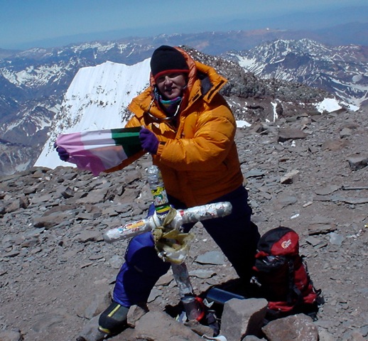 OK, you are on the summit of Aconcagua – one of the 7 Summits, the highest outside the Himalaya and in the Southern Hemisphere. Hmm what else. That flag, not sure what it is – Newfoundland?