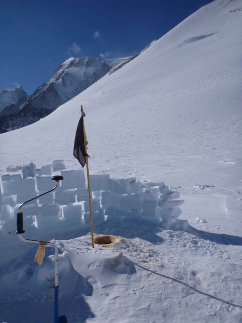 Here’s what a urine/grey water dump looks like. Again, between camps, climbers must capture their urine in a pee bottle and carry it up or down the mountain to a dump site.