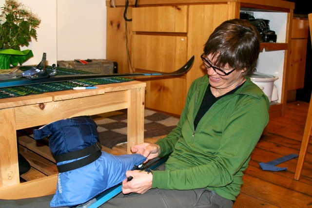 The gift of a late March snow storm is that is prompts one to stay home and attend to one’s packing chores. Marian and I spent much of today doing Greenland prep chores. I don’t know how I ever managed to get out on an expedition without her. She’s the best! In the picture above, Marian is designing a pair of overboots for my ski boots-she is re-purposing a vest she got from Value-Vill. On those super cold Greenland mornings, I’ll be able to put a Marian original ski boot “parkas” on to give my feet some extra insulation and keep my toes happy. I’m much appreciating Marian’s skill and experience with sewing clothing and outdoor gear. She’s contemplating sewing us a spray squirt for our summer canoe expedition…truly amazing to me!