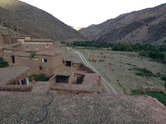 We’ve walked through many villages on our trip. This picture was taken from the roof top of a vote where we stopped for tea. What has struck me about the houses is that they seem to be part of the landscape. They are often built from local stone and mud brick. Each village has a signature colour that ranges from ochre red to copper patina green. They are often built around a central courtyard. The courtyard, in some cases is home to a cow, chickens, or sheep. This village had recently been recently been reached by a new road. As a result, I got to see a chicken cross the road