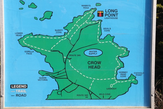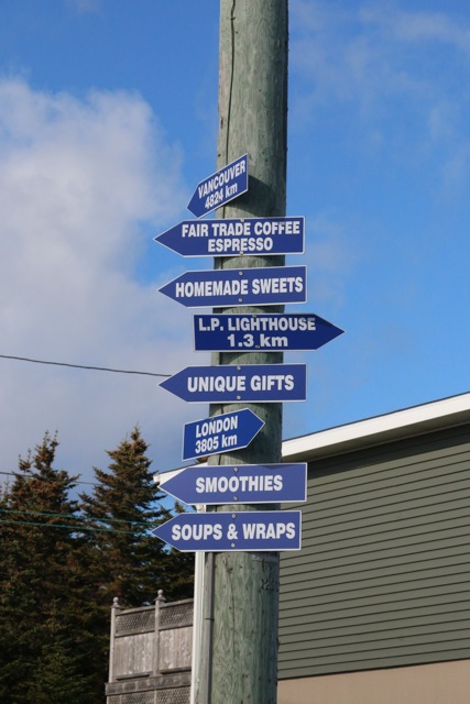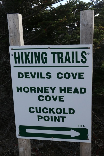 I wanted to title this post: TA’s Triple A (being that I am so fond of acronyms). It would have stood for TA’s Twillingate Awesome Autumn Adventure! Marian and I put two Twillingate trails together today to have a fine hike we’ve called All Around the Lighthouse! We drove up to the Long Point Lighthouse and found the trailhead sign for the hike.