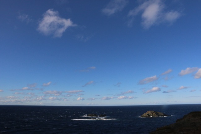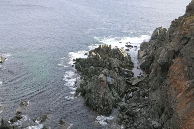 The ocean on this side was in the lee of the headland so was quite calm. The other side was being whipped up into a white capped frenzy by the 60 kph gusts that blew refreshing October winds across our faces.
