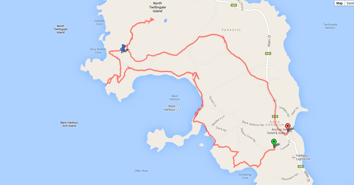 We hiked a circle of about 2.5 hours and covered over 8 kilometres before returning to our fine abode at the Anchor Inn. We called our hike a “bash about” because we were making many parts up as we went along and we have been inspired to come back to try a more epic version…we want to come and see if we can walk around the circumference of Twillingate North Island the next time we come. We’ve done enough scouting to think “it will go.” So stay tuned…