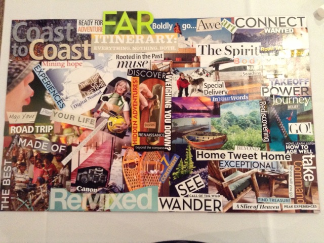 I’ve been on the road for a week or so traveling to the Association for Experiential Education conference in Denver as well as The Leader Within Leadership Retreat at Bishop’s University. The week has been filled with reflection and spending time with dear friends, mentors, and students. I think I have been craving some reflection/setting direction time and I have appreciated all the long chats, walks, workshops, and specifically, a collage making time.