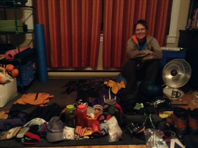 Three: Contain all climbing gear and conference clothes in North Face duffel and still have 10 pounds of baggage allowance to spare. Marian’s job in all this is packing supervisor. She makes sure I don’t take too little 🙂 as I am often want to do. 40 pounds including mountaineering gear…I’m pleased!