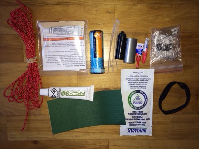 Stage Three: Now that all gear has been pulled, it’s time for final decisions and grouping supplies into categories for bagging. This is our mini repair kit. It will allow us to patch our thermarests, resole our boots, and fix most anything else that might break or wear out. As my dad always used to say, “If you can’t fix it with cable ties and duct tape, it can’t be fixed. Now, back to the piles.