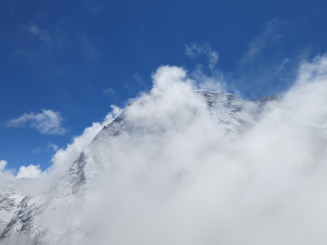 of the lakes below completes the picture. The only way to get a better view of the entire Everest region would be to climb an 8,000 metre peak! Although further from Everest than Kala Pattar, the traditional viewing point, here we see more of the mountain and enjoy a more relaxed environment to view the peak.