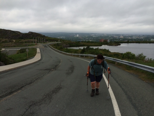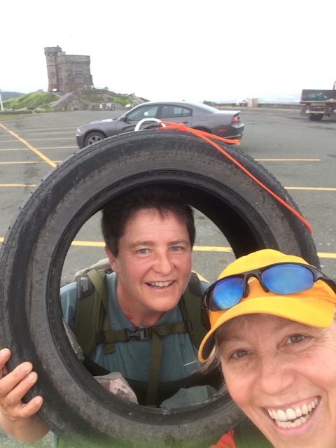 My previous tire, from my the Omamobile, (which I retired after I dragging the sidewall out of it-the tire, not the car) weighed 45 pounds with the rim. The rim dragged and made a horrible screech so I am very happy to report that the new rig is much quieter. This morning, I started pulling the two tires side by each (assuming that together they weighed about 45 pounds-I will confirm that later today) but the friction of two tires against the pavement was a bit much for day one (I pulled them like that from the bottom of Temperance Street to the Battery Hotel/MUN New Offices/Engagement Centre/Grad Student Housing building in process, it needs a new name.) It’s usually good to ease in, so I then elected to stack them which kept the weight but reduced the friction to a good first day work-load.