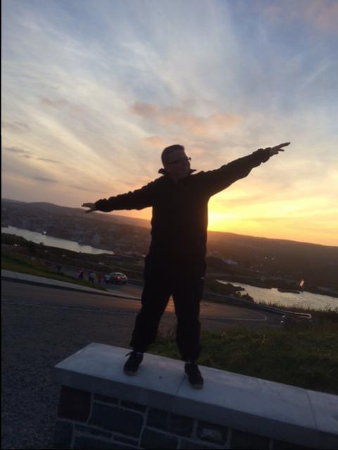 It was a double double day on Signal Hill today because I saw both the sunrise and the sunset from the top of the hill. I was on my own this morning do some stair climbing with pack weight. This afternoon, I was joined by Gemma for an Up Down, Up Down workout. My legs are pleasantly spent and I enjoyed seeing both the eastern and western skies lit up with colour. I was also thinking that double double means inviting a friend, having a buddy, sharing the hill…I’ve been appreciating having folks out on the hill to climb and chat with-it makes the time and toughness go a bit faster and a bit easier. So, if you’re having a hard time getting off the couch, go for a different kind of double double: invite a friend and head out for a walk (and these days with the shortening daylight-you’ll likely catch a sunset or two.