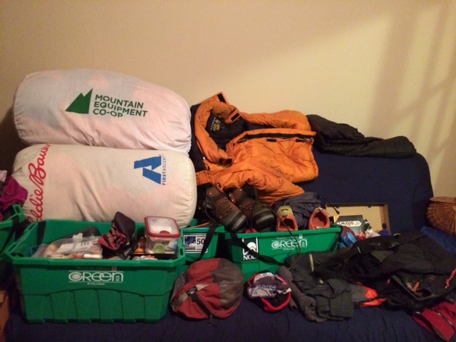 I like to start packing early. It helps work with the anxious thoughts and feelings that arise before a big climb. The first step is pulling the gear which Marian and I started doing last night. The nest step will be checking it all against the gear list and doing all the little tasks like attaching zipper pulls, changing batteries, and making needed repairs. Working with gear gives something concrete to do with all the anxious energy that’s moving in and through…and I’ve long since known that I’ll soon be dealing with my classic pre-trip decisions influenced by the erroneous belief that if I only make the perfect choices that I’ll never be uncomfortable on the mountain. Fortunately, experience has taught me that a) life at high altitude is most always uncomfy in some form or another, b) there is no one right choice, c) that I can make it work no matter what choice I make, and d) everything is gonna be alright. (watch this great video by Amelia Curran and Roger Maunder…the sound track is perfectly soothing for times like this and the message absolutely critical)