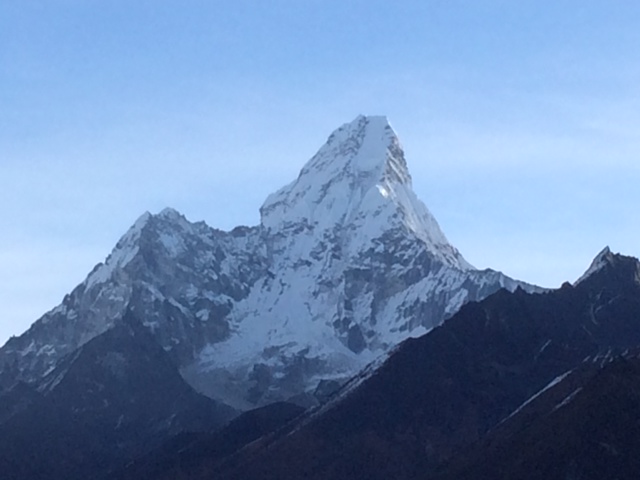 Wow. The view view of Ama Dablam has us all talking excitedly. Fortunately Tim warned us not to get overwhelmed by the view. Step by step. Day by day. I listened to a podcast last night when the altitude provided a bit of insomnia and the take home message was don’t ask “Can I?” Instead, ask “How can I?” Sage advice when looking at this view.
