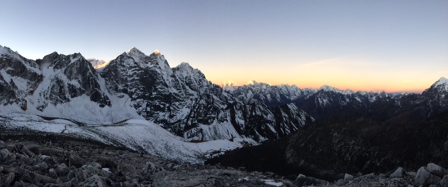 In the end, three team members went to Island Peak. Three caught a helicopter home early and three of us completed a 7 day trekking route over the Cho La before rejoining the Island Peak climbers in Kunjuma. Two team members climbed to the Grey Couloir, three or four to Camp Two, and the rest to various spots below Camp Two. The Island Peak hurry-up plan deprived some teammates of much needed rest and they were bagged (exhausted) when they climbed back up to Camp One on only one day of rest. I suspect, without the distraction of relocating the expedition for the peak bag, many members would have reached a high point of Camp Three but we’ll never know.