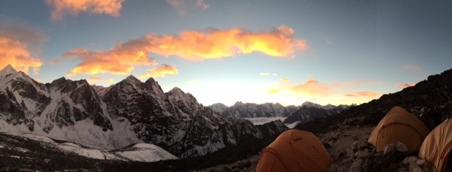 No real planning happened the evening Team One came down from the mountain. The leader didn’t initiate any and folks were just glad to be in the thick air. The four of us in Team/Wave Two made plans to go back up in the morning. Andy and I liked to leave early to allow plenty of time to melt snow and hydrate lots. As we were heading out, the rest of the team was discussing a potential plan to climb Island Peak ( a trekking peak 1.5 days walk up valley). We left them to it and starting up the hill once again arriving at ABC slightly faster than the first time. The views were awesome and all of us felt better being up the mountain the second time.