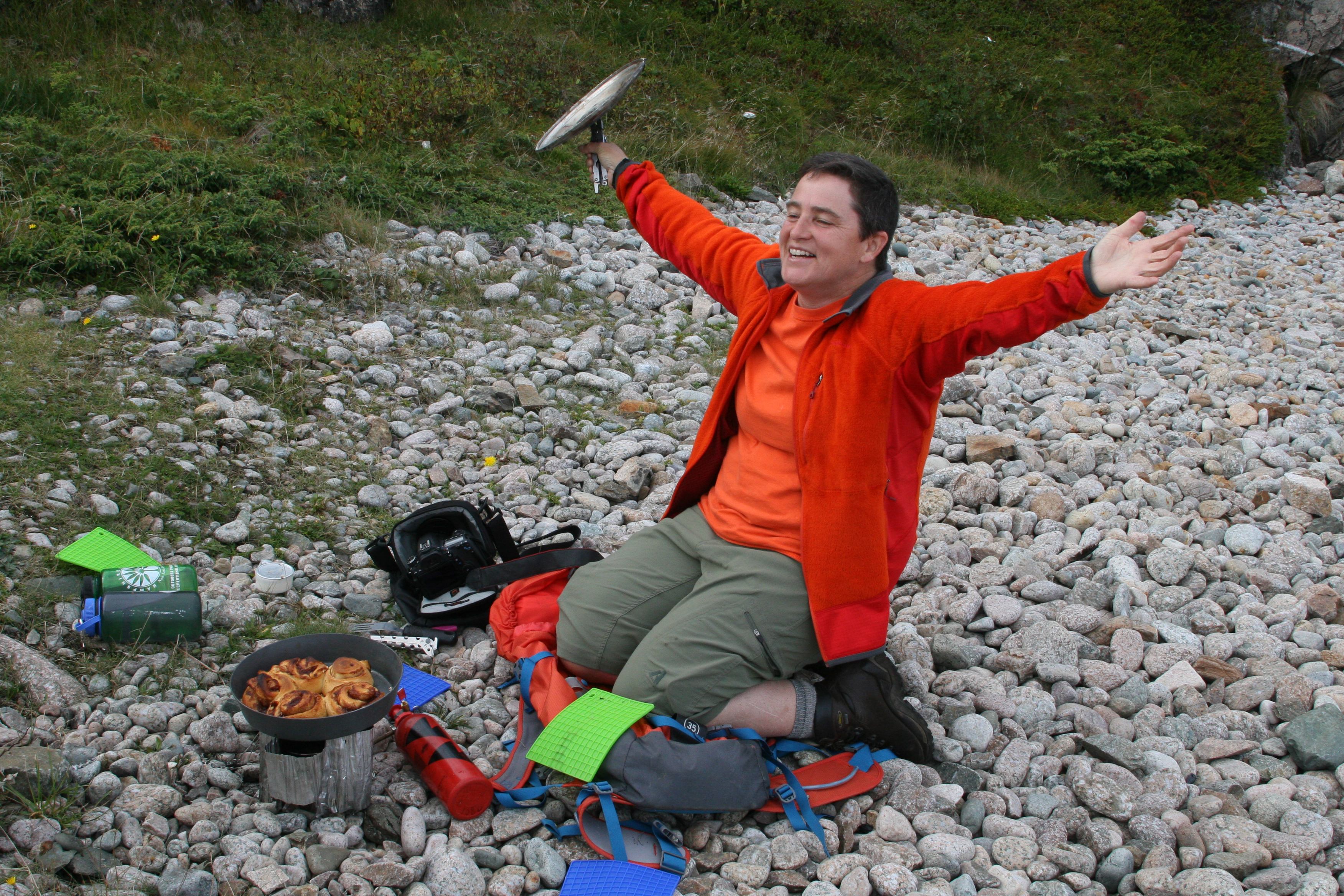 After twelve minutes of carefully keeping the twiggy fire burning, it was time for the big reveal…TADA…WAHOO…Joy oh Joy….Buns on the Beach!