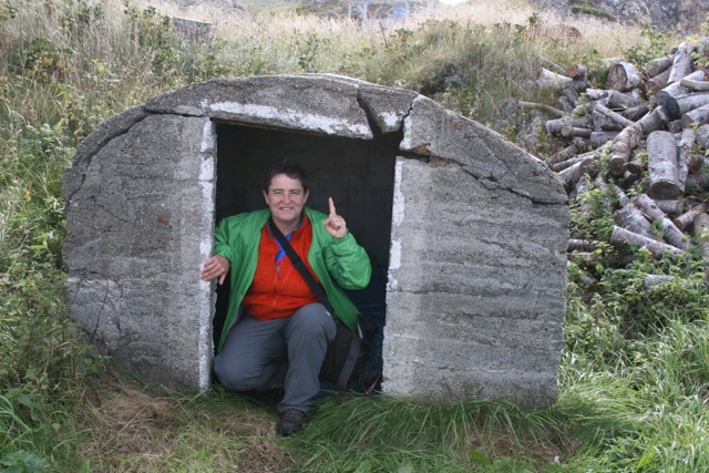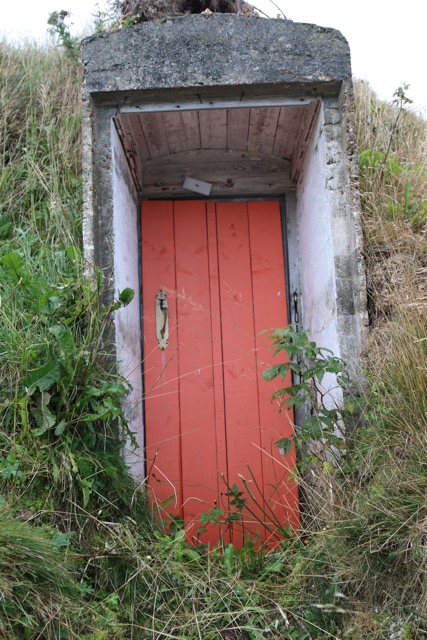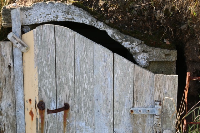 He got out of his chair and pointed out the window across the bay to this root cellar I’m pictured in. This was the first root cellar he’d taken a picture of…and that one lead to another one, and to another one, and another one…one by one, he found them, learned their history, photographed them, and catalogued them. What a treasure of information. Otto said that he didn’t photograph the root cellars that were simply dug out of earth or that has been lined with wood because most of those, had caved in and looked only like rubble piles. He, instead, turned his photographic eye and documentary interest, the the ones constructed out of concrete. The photograph above shows very well the classic concrete construction for a root cellar. This concrete hull would be poured and then covered with sods to help insulate the structure. Many root cellars have a double door to provide an airlock/climate control when entering and leaving.