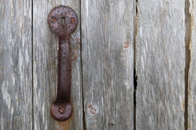 The hardware is often rusted. Some doors are nailed shut. Some doors have fallen off their hinges.