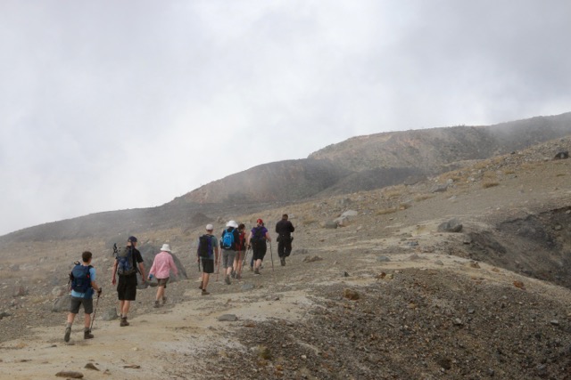 Near the crater, there was no vegetation only small pebbles/volcanic rocks. Looking down into the crater (which is actually four craters) was breathtaking because of the turquoise crater lake at the bottom. The crater lake is 300 metres deep and was churning and bubbling.