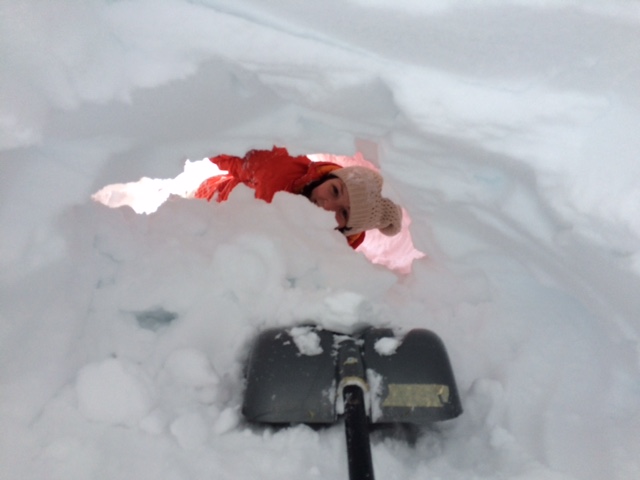 Back to Holloway Street, as I made my way up the hill a few more times, I thought about how lucky I was that some of the courses I teach have a built in “hook” for motivating students. This week I was teaching my HKR 4210 and 3545 students how to build quinzhees. A quinzhee is a snow shelter build by piling up snow into a mound, waiting for it to cinter ( the snow flakes to bond), and then digging out the inside through a small hole.