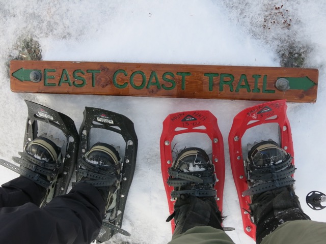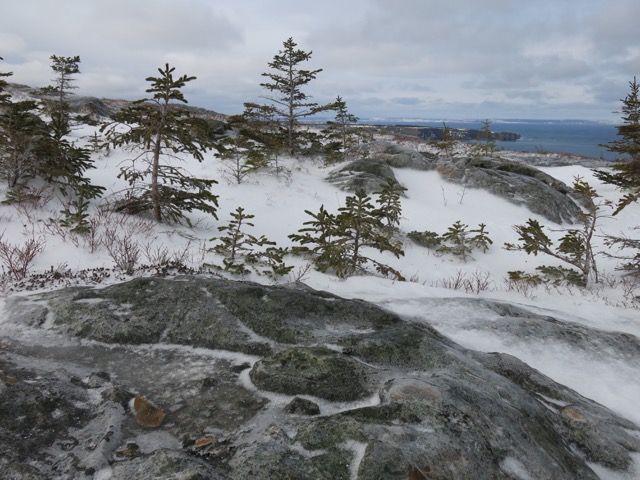 Marian and I had an awesome training hike today on the East Coast Trail from Portugal Cove to Brock’s Head Pond. This is one of my favourite sections of the trail and I often take students out on it during the summer. With the combination of snow and freezing rain we’ve had in the past few days, the snow conditions were perfect for fast hiking and speed work on the hills and the interplay of ice and water was spectacular.