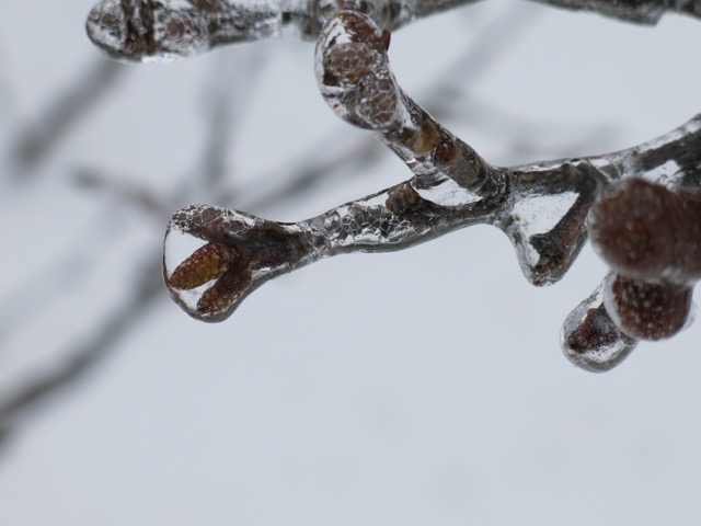 The ice on the branches caught the occasional beam of sunlight and invited us to pause and admire nature’s handiwork.
