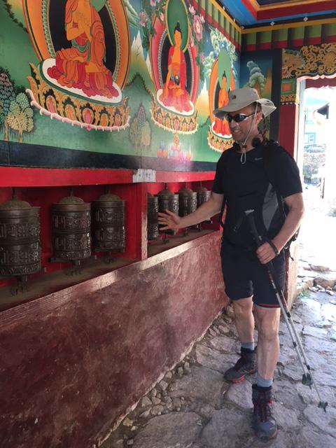 Thus far, everyone is feeling OK. We had a great lunch. I chose garlic soup (thought by Sherpa folks to aid in acclimatization-not to mention delicious) and chicken curry with rice. I began my day with a Nepali breakfast of veggie curry (potatoes and green vegetable), rice, fried eggs, and chapatti (flat bread). Thus far, I’m eating well and enjoying every meal. We have a saying that goes, “She or he or they who eat and drink the most, get to the top.”