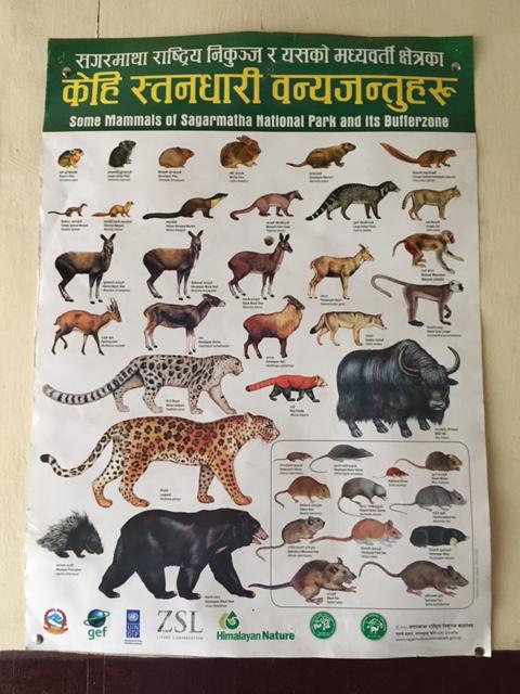 I know folks are often interested in the wildlife that we might see so I snapped this picture of a wildlife poster in our tea house. I haven’t seen any wild things yet but I have on other treks.