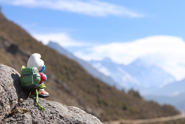 Speaking of small things, Climber Smurf enjoyed the walk today as well. In this pic, Climber Smurf is enjoying a view of Everest.