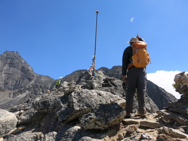 Climber Smurf and I led the way to the small stupa on the saddle above Dingboche. Smurf loves prayer flags as much as I do so we stopped to take a few pics.