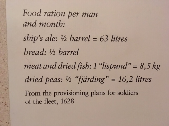Check out the provision list…63 litres of ale per month! Not much fresh food-huge risk of scurvy. The Vasa spent over 300 years at the bottom of the ocean, now it is here in Stockholm for visitors to learn from and study.