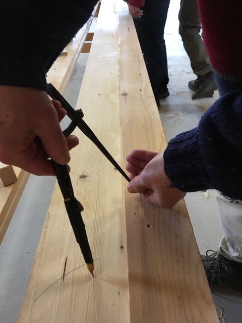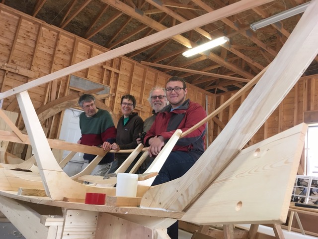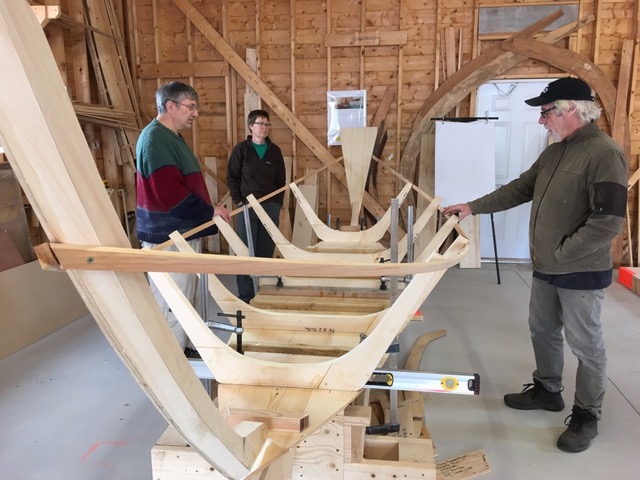 It’s been great sharing this week of boatbuilding with two of my dear friends. From past projects, we’ve brought a familiarity of how each other works, exists, and things we are good at in the world. Mike is awesome at scribing and understanding in 3-D. Marian brings an eye to detail and a Macgyver can-do spirit. Me-I bring the spirit of adventure and curiosity and weaving all kinds of things together. Together with Jerome and Nicholas (his summer boatbuilding apprentice), we’ve formed a wonderful and engaged boatbuilding team. We laugh. We cuss. We measure. We measure again. We cut. Sometimes badly. Sometimes right on. Today as we fastened the ribbands, Jerome and Marian held them in place, Nicholas pre-drilled, I drilled the counter-sink, and then Mike drove the screw. Like clockwork. 14 times. Boatbuilding has lots of repetition. Lots of opportunities for practice. Lots of ways to learn from one another. Lots of ways to mess up and then fix it. When I became a Buddhist, I took refuge in the Buddha, his teachings (the Dharma), and in the community of his followers called the Sangha. Learning new skills usually requires both individual practice and a community to learn in. I’m grateful for the great team I’m learning with this week.