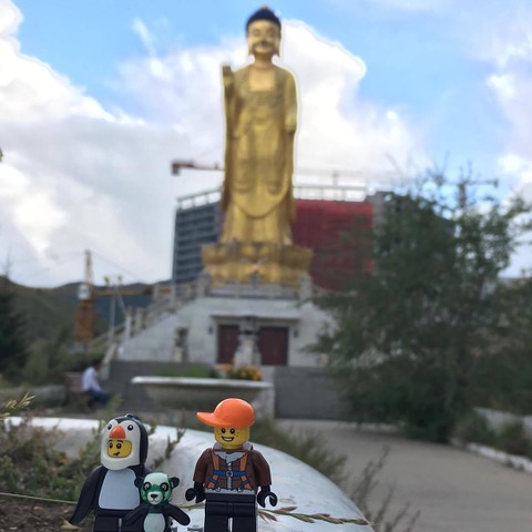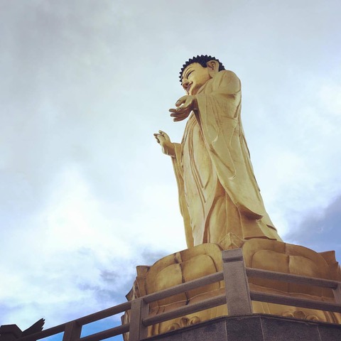 Grabbing our bag once again, we got back on the horse and headed out to the bus stop. The 52 came shortly and we hopped on. No crowds and we easily got seats. 15 minutes later we were at the last stop on the route and trying to find our way through the urban sprawl to the hiking trail we’d read about. We started walking uphill through many concrete skeletons of developing buildings, asked a few folks (none of whom answered in English-though 2 fingered pantomimed walking worked well-and we found our way to some trees. And found a hill to climb until the thunder and lightning got too close so we retreated back down and gave thanks that the clouds decided not to burst on us. The trees were huge green, and Larch and it was great to be amongst them. We walked back to the main road and decided to visit the Golden Buddha we’d seen a few times driving by. It was a gift from the country of South Korea and a monument to peace. We’ve visited many peace memorials and monuments in our time here-and prayed for peace in our world each time.