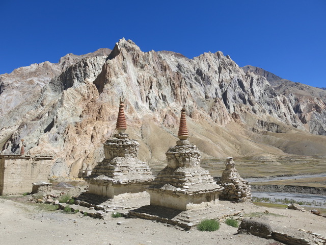 We are in Kathmandu for two more nights and then we head to Bhutan for the very strenuous Snowman Trek. It’s been on the list for years and we’re pretty excited that it’s come to fruition. With so many weeks of the summer devoted to surgery and recovery, we weren’t able to do as much hiking and training as we would ordinarily do for climbs and treks. Fortunately for us, we’d planned a trek in Ladakh, India which provided the perfect “boot-camp”/intensive preparation we needed to get our feet/legs/minds ready for the challenges of the next month. We trekked in the Zanskar region of Ladakh and the terrain was stunning. We hadn’t looked too close at our itinerary before arriving noting only that “the first two days were downhill.” That was indeed true but the next five were very much uphill (and down) as we had to traverse six passes with a total elevation gain of almost 7000 metres and a distance of 135 or so kilometres. Two of the passes were over 5000 metres and we’re now enjoying the relative “thick” air of Kathmandu at 1300 metres. The sky was blue most days and underfoot, the trail ranged from almost highway to non existent scree fields. The views were stunning and we even saw K2 in the distance from our last pass (what a thrill!)