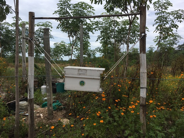 It turns out elephants don’t like bees! And I suspect bees don’t like elephants who disturb their hives. As you can see from the picture above, you can see one of the hives suspended between two posts. Each hive is connected to its neighbours by a rope that spans the openings between the hives. Should an elephant disturb the fence, the bee hives move and the bees come out and repel the elephants. So far, it seems to be working…