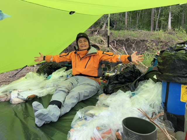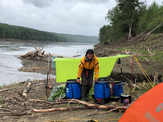 We took a rest and prep day today. We loved “Lily Creek” so much that we decided to stay awhile. The picture above shows what a “barrel dive” looks like. We are travelling with six weeks (now four weeks of food) and so had the top thirds of both barrels as working sections. One held breakfast and lunch foods, the other supper foods and staples. Now two weeks in, it was time to dive in and bring two more weeks of food into the working sections of the barrels. We aren’t yet eating enough 🙂 so there isn’t yet tons of room in the barrels but our appetites are growing by the day. So now the good system is all set for the next two weeks. We will resupply perishables in Fort McMurray.