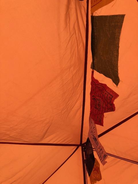 We are hunkered down in our tent. The winds are sailing round and the shaking tent is making our prayer flags sway. We are across the way from Fort Chipewyan, a wee bit broken hearted, after a huge paddling day trying to get there. We are 4 kilometres shy and camped on the winter road. The sky above us has tumbled some and is a sickening shade of gray but so far, no big strikes. It will be fine with us, the swirling winds have already cemented our decision but it was still hard to stop so close. The risk benefit analysis had too much on the potential loss side if a doozy storm kicked up. So, we are dry, have our best campsite in days (no sand, no bugs, no mud, and cell coverage) :-).