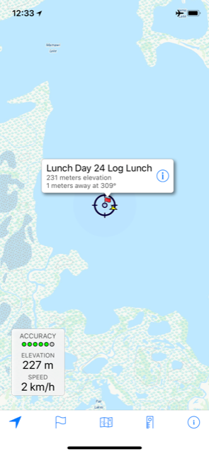 On the pic above, you can see the location of our lunch log. Pretty cool, we had lunch “in the middle” of the lake. It was a big day…we paddled about 41 km with 20 of them being against the wind and 9 of them being against wind and current. We expected the trip to Fort Chip (live the rhyme) to take 8 days so you can imagine how pleased we are to have almost reached it on day five. We were able to cut off some distance by using the Mawawi option rather than the Embarras or Fletcher Channels.