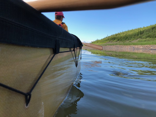 Yesterday we paddled by the place where the first oil well was drilled in the 1920’s. At the time, it was one of the largest oil finds in Canada and the reason why Norman Wells exists today. It was so cool to paddle by the Norman Mountain Range today that we flew beside in March.