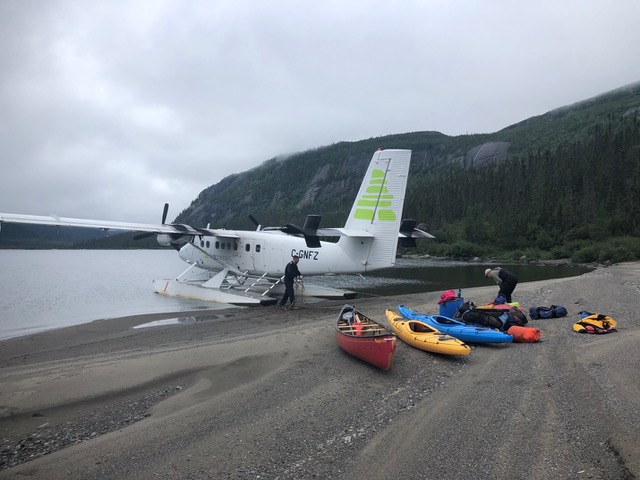 You’ll notice that I said, “Planned route.” Given low-lying fog on the morning we flew out of Goose Bay, we were unable to land on Harp Lake. Harp Lake is 50 kilometres long, 1.5 kilometres wide, and has 600-metre-high canyon-like sides. With little to no visibility at the top elevations of the canyon, it was impossible to land safely. When the floatplane turned south to return to Goose Bay, we sank into a collective depression. Keith, the pilot, asked if we wanted to be dropped in Snegamook Lake. I climbed over the seats to go talk to Mark and Darren who were seated in the back of the plane. Marian and I had paddled the Kanairiktok River in 2015 so were familiar with it but none of us had paper maps of the area. A quick consult yielded a negative decision on that option and I communicated that to the co-pilot.