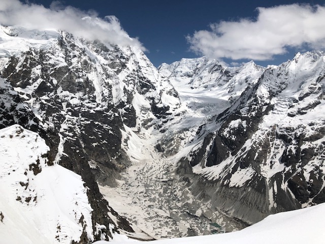We could see the junction of three glacial valleys and even into Tibet. It was 360 degree mountains and my inner Snow Lion soared.