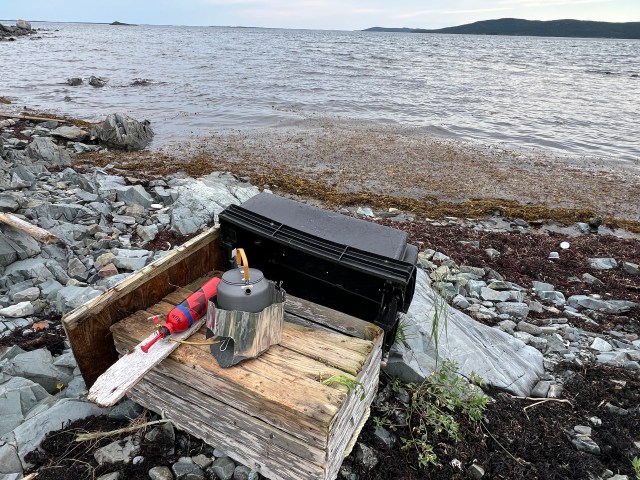That same breeze that got us here made cooking a challenge so I got inventive with beach finds to cook dinner. After dinner, after Fraser Carpenter let folks in Little Seldom know we were here. Brandon Collins came down for a visit and brought us a treat.
