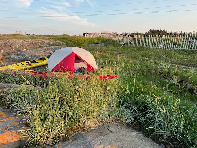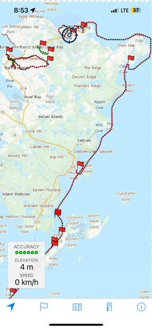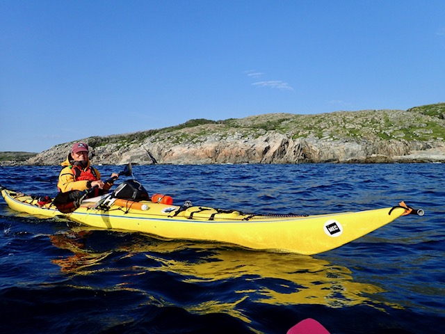 On the map you can see we rounded Cape Fogo this morning. We paddled around three sides of it and the colliding swells from the Southwest and North combined with the clapotus from the waves hitting the Cape-it it feel a bit like a square dance and that we were being hipped by the point. In I’s the B’y, the lyrics,