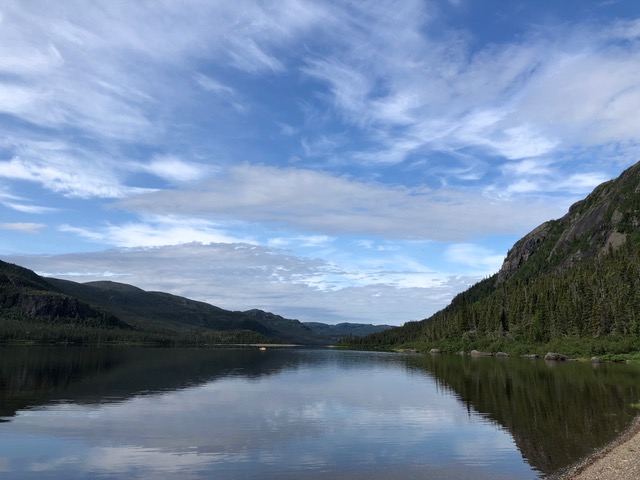 You’ll notice that I said, “Planned route.” Given low-lying fog on the morning we flew out of Goose Bay, we were unable to land on Harp Lake. Harp Lake is 50 kilometres long, 1.5 kilometres wide, and has 600-metre-high canyon-like sides. With little to no visibility at the top elevations of the canyon, it was impossible to land safely. When the floatplane turned south to return to Goose Bay, we sank into a collective depression. Keith, the pilot, asked if we wanted to be dropped in Snegamook Lake. I climbed over the seats to go talk to Mark and Darren who were seated in the back of the plane. Marian and I had paddled the Kanairiktok River in 2015 so were familiar with it but none of us had paper maps of the area. A quick consult yielded a negative decision on that option and I communicated that to the co-pilot.