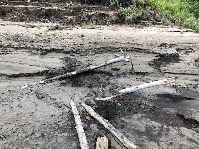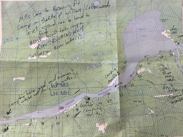 Sue suggested we visit the local museum and learn more about Norman Wells and the CANOL pipeline. We enjoyed the visit so much and wished we had more time to visit it again. Neither of us understood the immensity of the CANOL project and, while watching a newsreel about it, realized that we essentially have paddled/traveled the supply route for the project. The picture above was a recruiting poster for folks to work on the project. It could also sum up the realities of paddling North :-). It was very interesting to see the newsreel footage of Fort Fitzgerald, Fort Smith, Tulita (then called Fort Norman) from the 1940’s. You may recall that two days ago we attempted to find the original oil well drilled at Bluefish Creek in 1920. Today at the museum we saw a picture of what it looked like nearly 100 years ago. We landed the canoe just below where the white building would have been but the hillside is now completely overgrown with thorny roses and alders. We did find a few pipes but that was all. It was called Discovery Well and started the oil boom here.