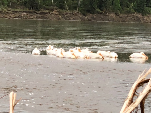 We had a wicked cool lunch spot today. The picture doesn’t do it justice. The end of the log was floating and I got to climb out of the canoe, with lunch in hand, up the tree. It was the only spot we could find as we paddled out Maeawi Creek to Mawawi Lake. As we are in the Athabasca River Delta, things are ever changing and maps just can’t keep up. Fortunately, we had satellite imagery to assist us because the map showed the creek ending at the lake’s edge when in reality, the channel reached out 5 km into the lake. It turned out to be very handy that it did as the wind was kicking up a bit and the extended version of the creek cut the open crossing down considerably.